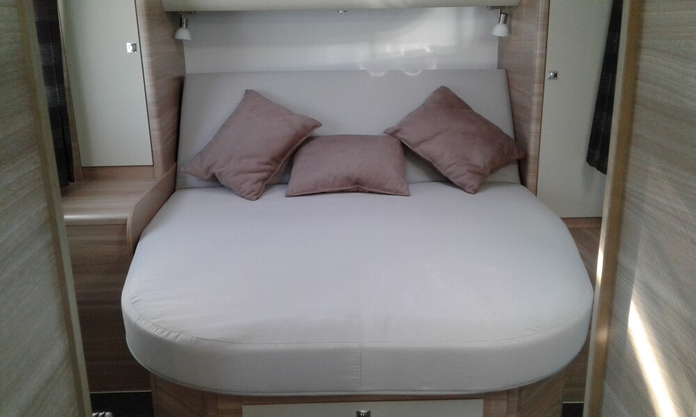 Autocaravana de grande conforto interior com 5 lugares de viagem e 5 lugares a dormir.